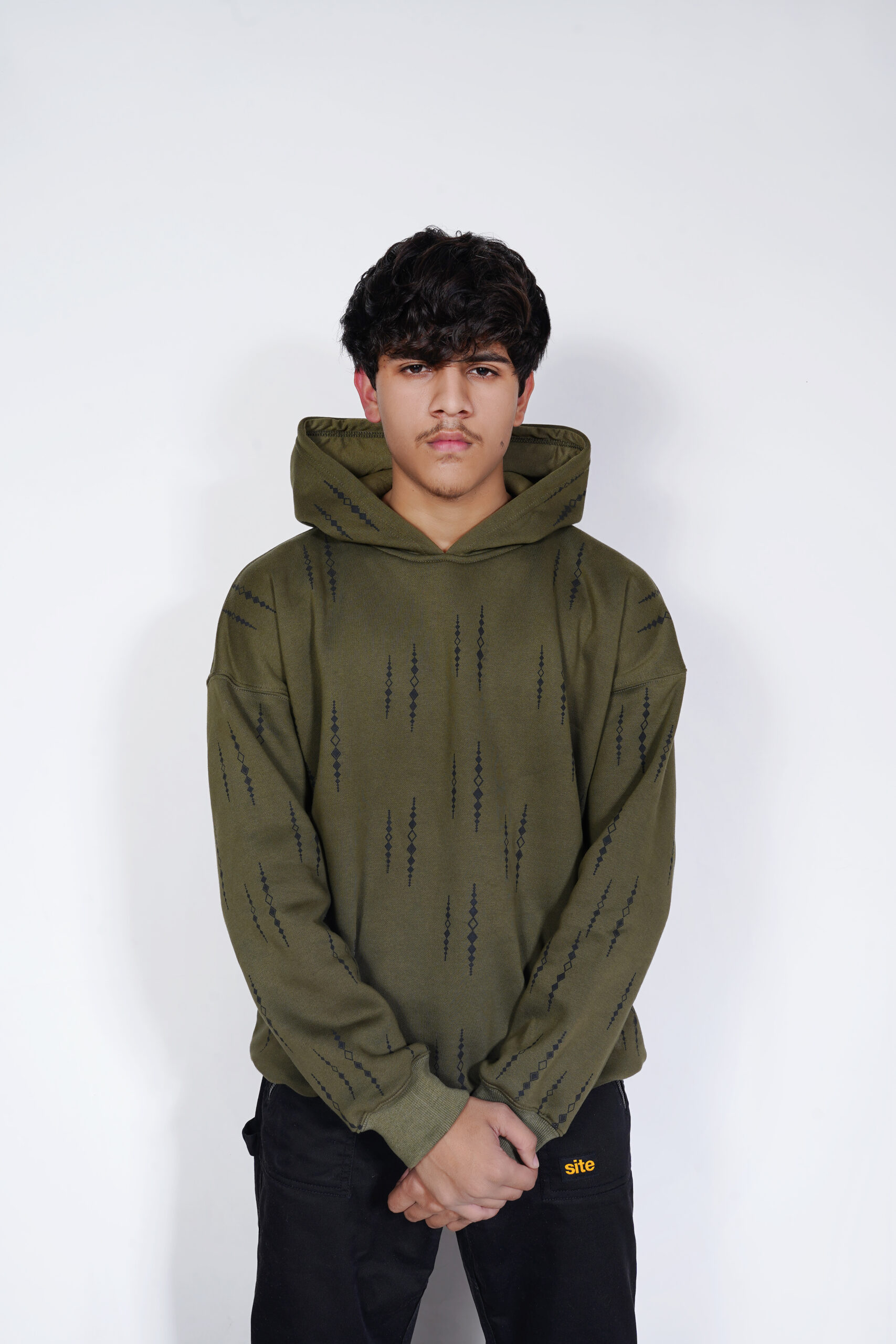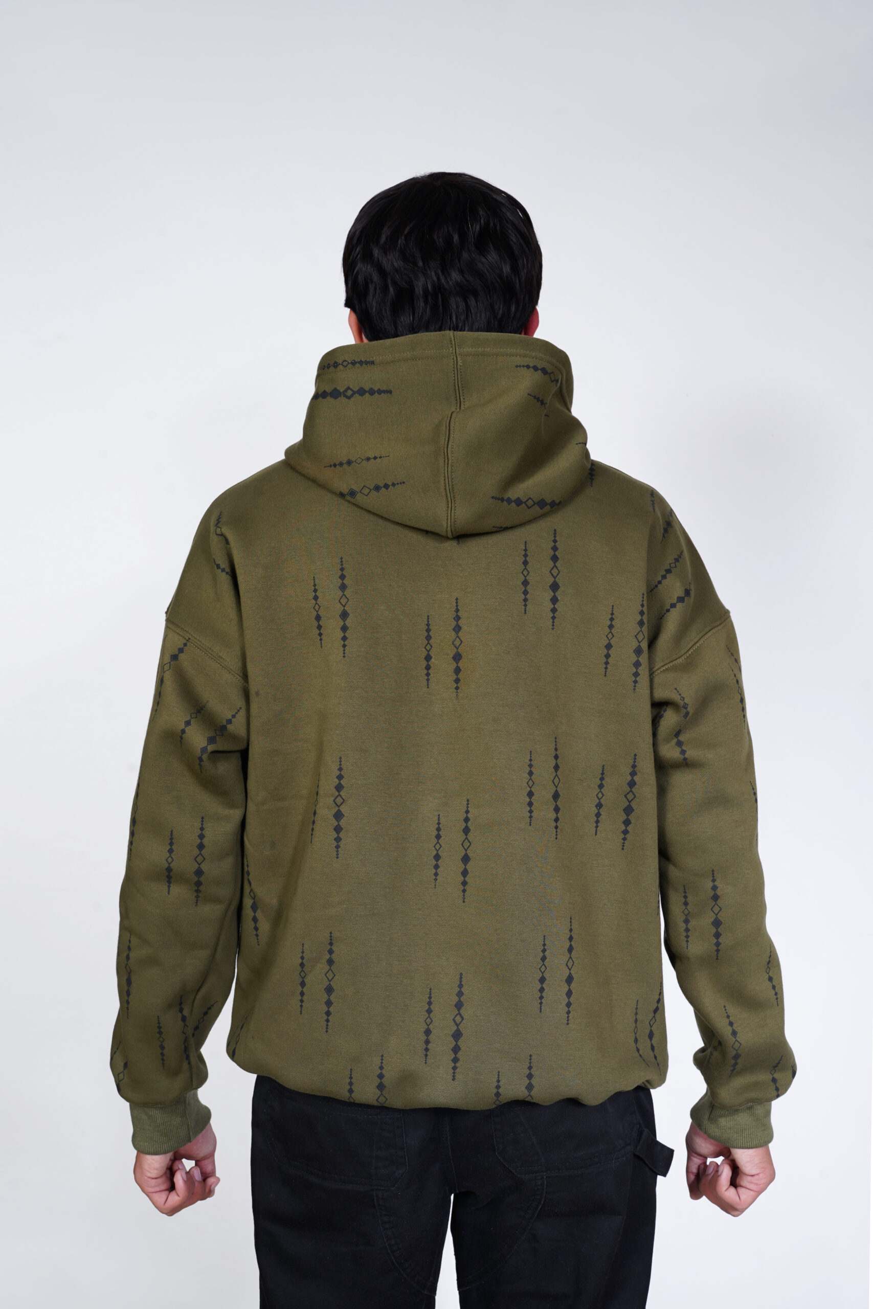 The hoodie features a minimal all-over screen print, carefully designed to create a balanced and consistent pattern across the entire piece. It adds texture and visual interest while keeping the overall look understated and versatile.